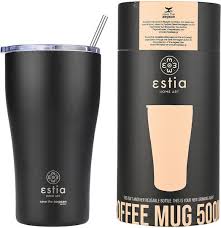 Estia Coffee Mug Save The Aegean Ανακυκλώσιμο Ποτήρι Θερμός Ανοξείδωτο BPA Free 500ml Midnight Black με Καλαμάκι