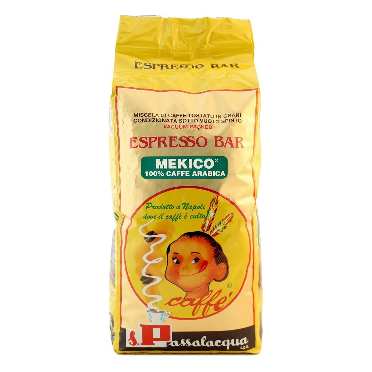 Καφές espresso Passalacqua Mekico σε κόκκους ο οποίος χαρακτηρίζεται κυρίως από τα έντονα αρώματα του και την ήπια λεπτή κομψή γεύση, με πλούσια κρέμα. Αποτελεί ένα αυθεντικό Ιταλικό χαρμάνι από την Νάπολη, την πατρίδα του espresso.